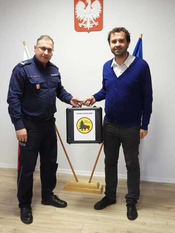 Podczas spotkania z Komendantem Powiatowym Policji w Giżycku mł. insp. Marcinem Wysockim Wójt Gminy Kruklanki Bartłomiej Kłoczko oficjalnie przekazał funkcjonariuszom Policji urządzenie iBlow Promiler – szybki, bezkontaktowy tester trzeźwości, który już wkrótce wspomoże ich w codziennej służbie oraz działaniach na rzecz bezpieczeństwa mieszkańców.